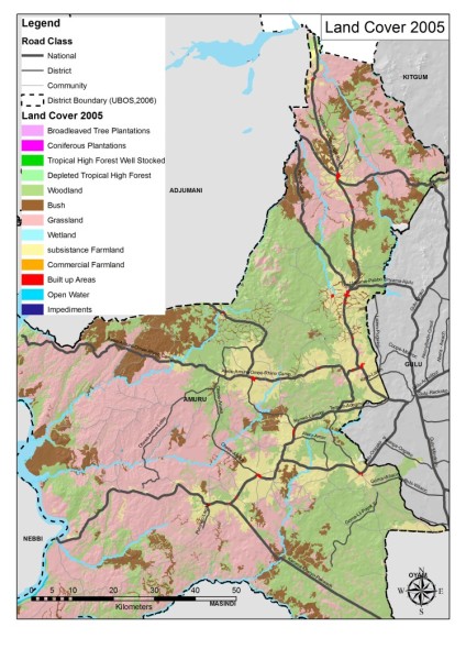 | Land Cover (2005) | Road Network & Gross Population Density (2007) by Sub-county | Bottlenecks |